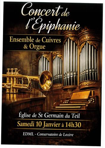L'Ensemble de cuivres de l'EDML se produira en l'église de St Germain du Teil dans un concert commun avec les Amis de l'Orgue.